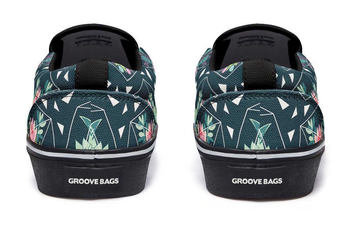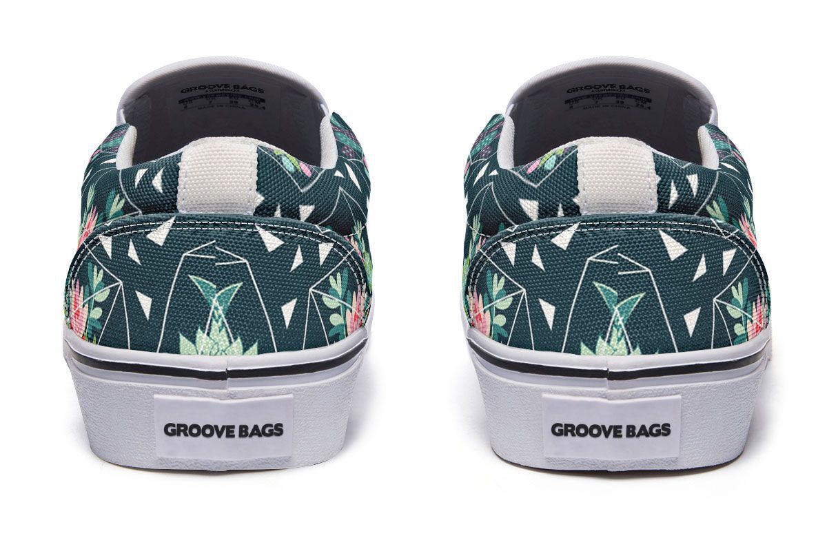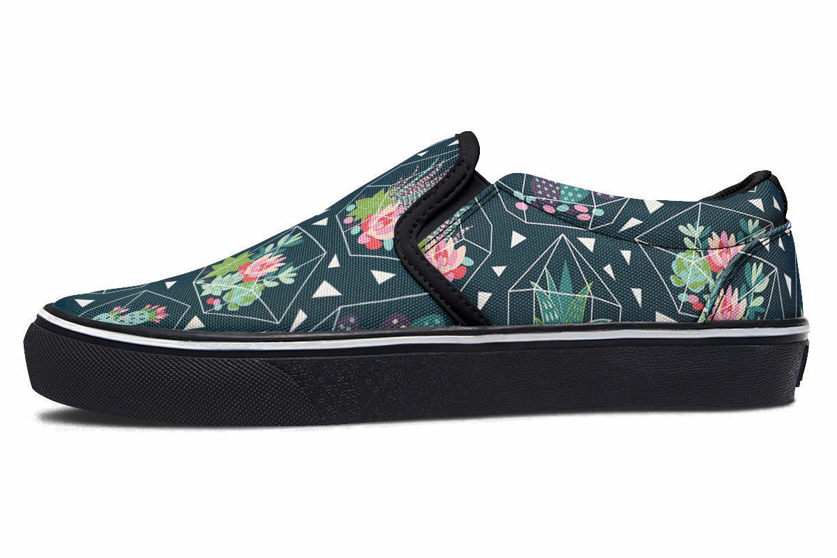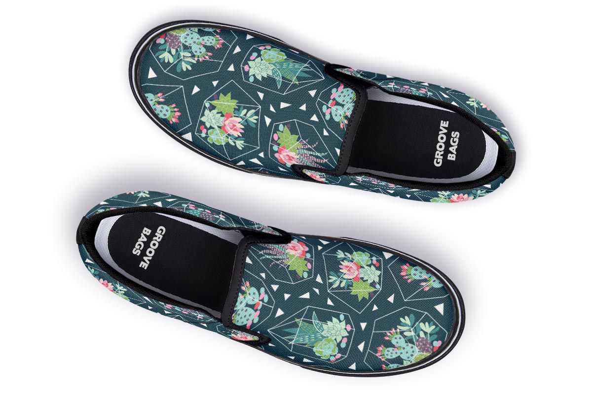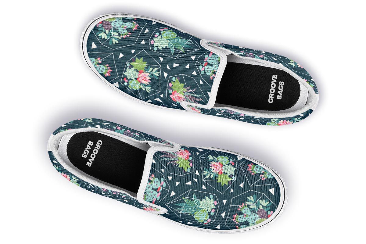 – Custom printed slipon with soft textile lining for maximum comfort.